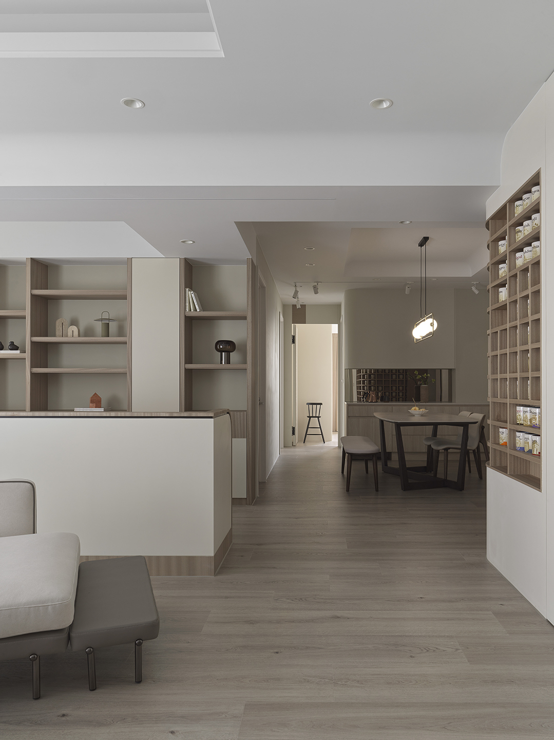 淡淡光線穿梭在木格與陶杯之間,空間不只是居所,也像被翻開的旅記。人在其中行走,日常與遠方同時存在。