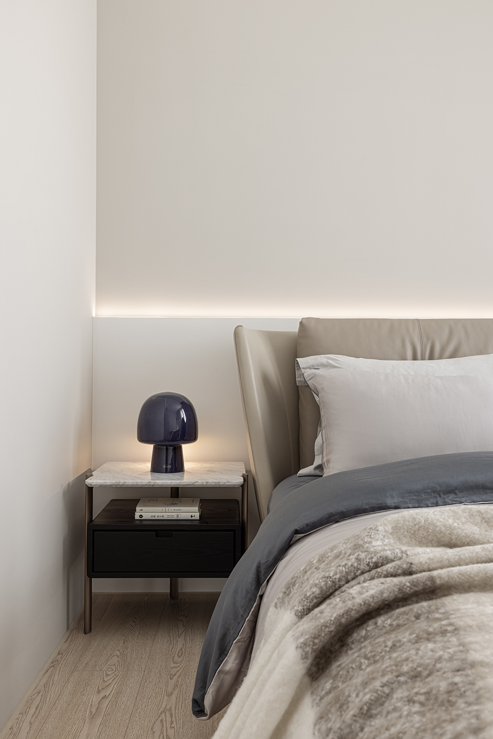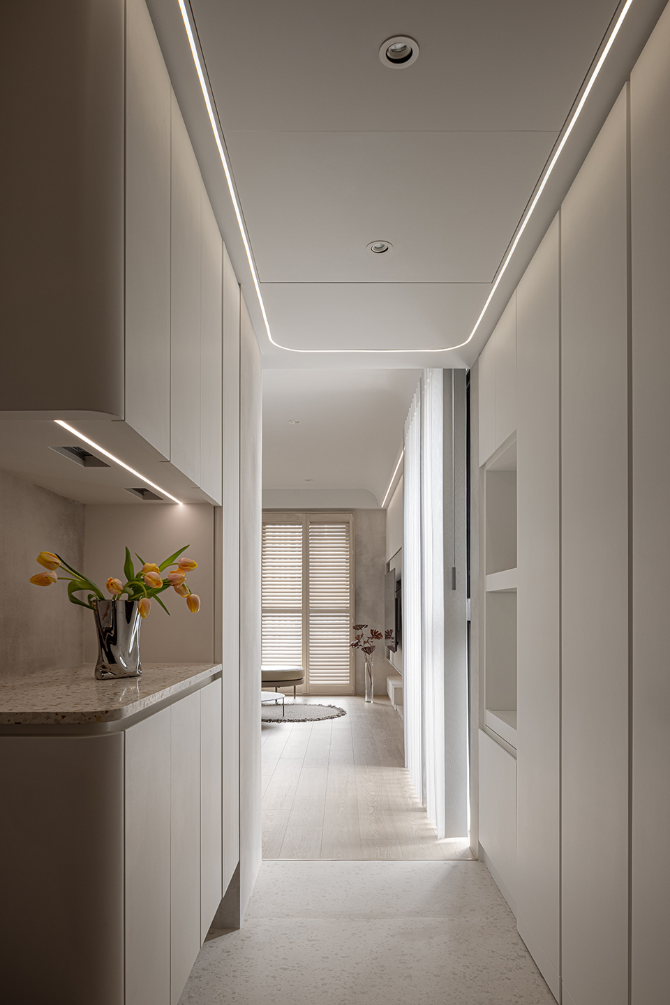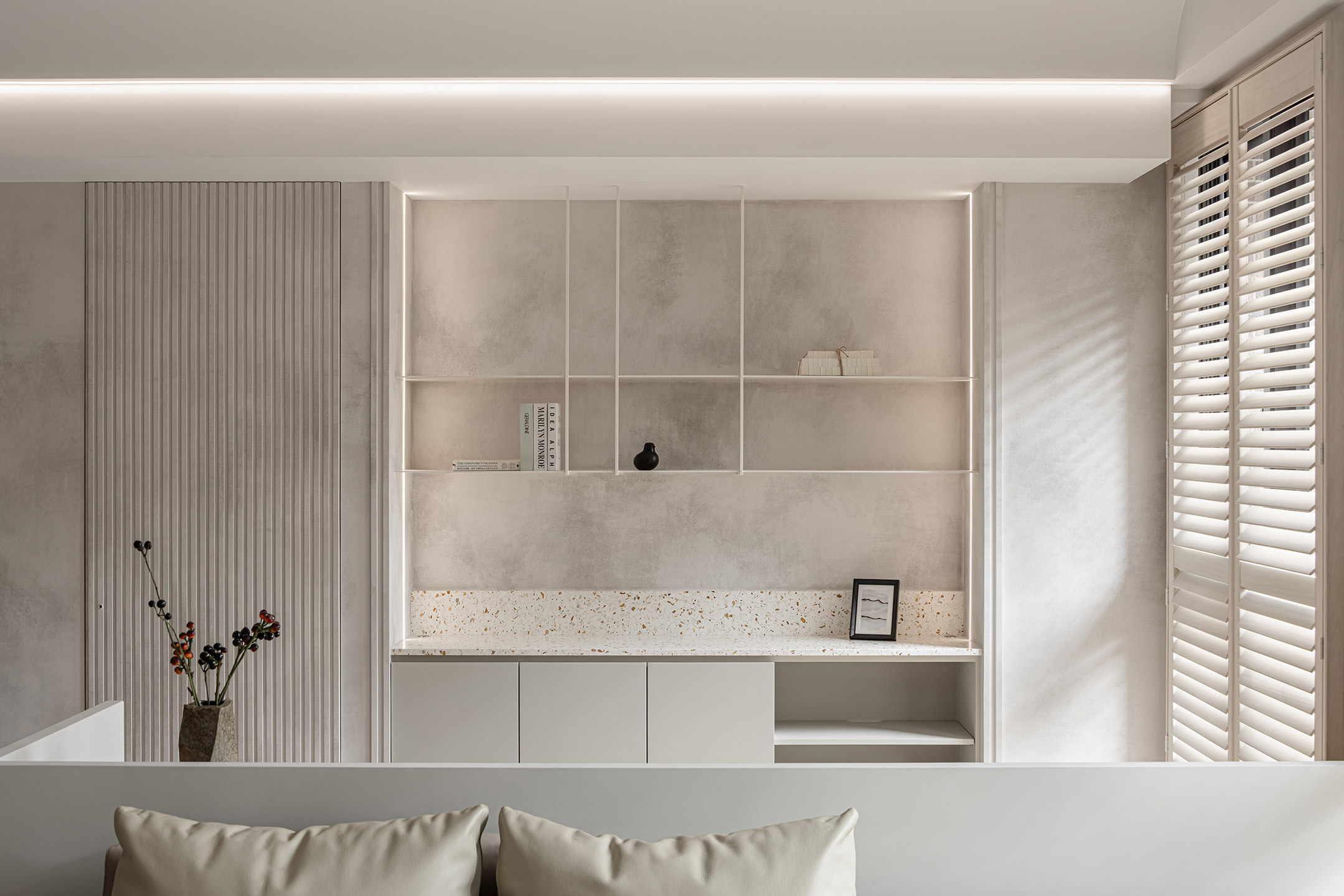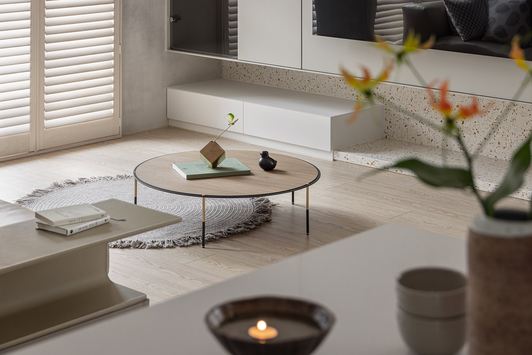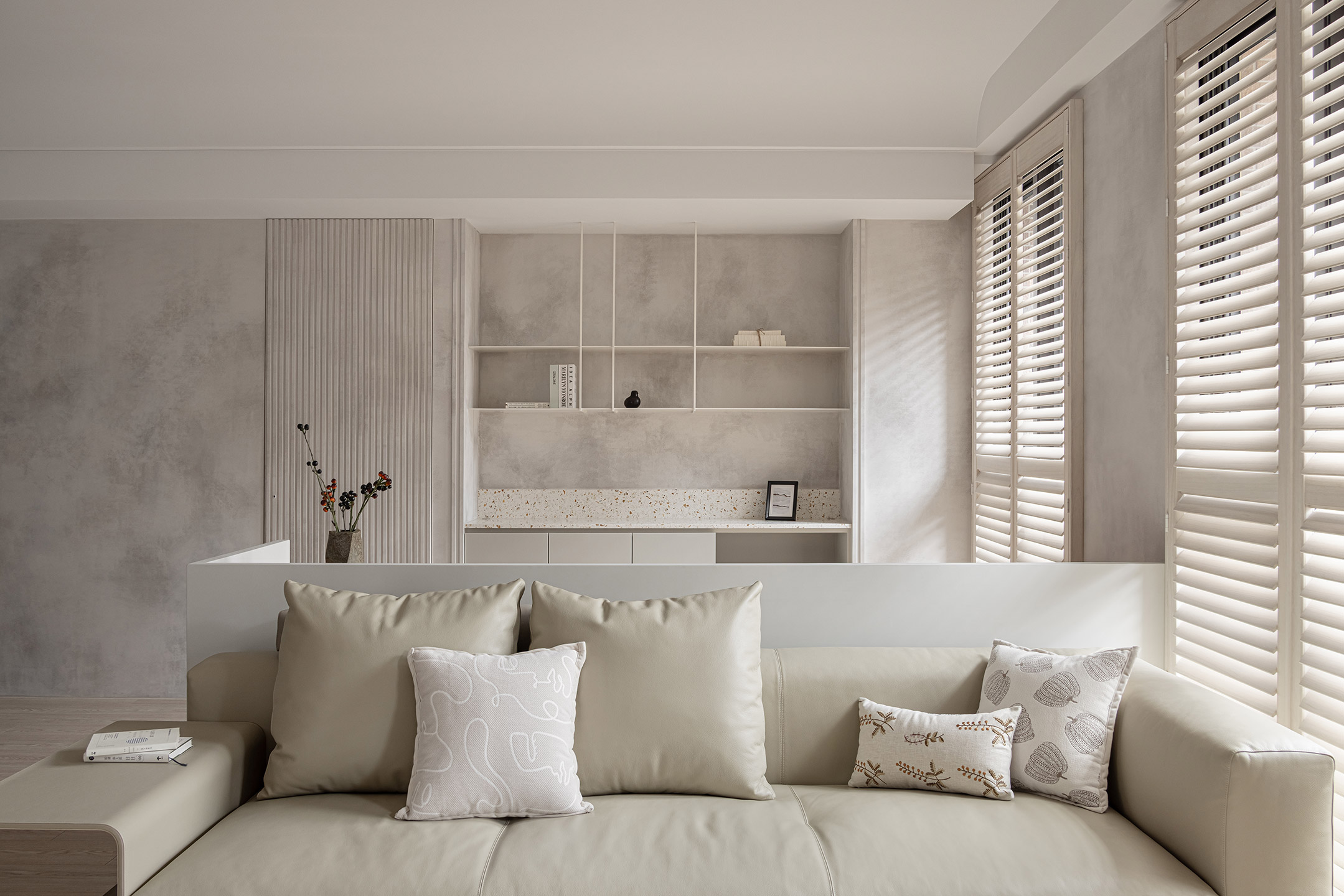 屋主在傳統市場工作,日復一日穿梭在熱鬧喧囂、人聲鼎沸的環境中,回家對他們來說,是一種徹底的放鬆與歸返。因此,這個客廳以極簡為本,不只是風格,更是一種心境的對照。