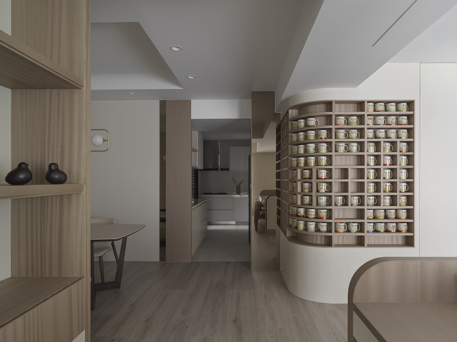 淡淡光線穿梭在木格與陶杯之間,空間不只是居所,也像被翻開的旅記。人在其中行走,日常與遠方同時存在。
